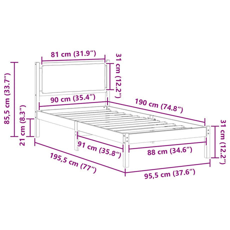 Bed Frame with Headboard Dark Grey 90 x 190 cm Solid Pine Wood