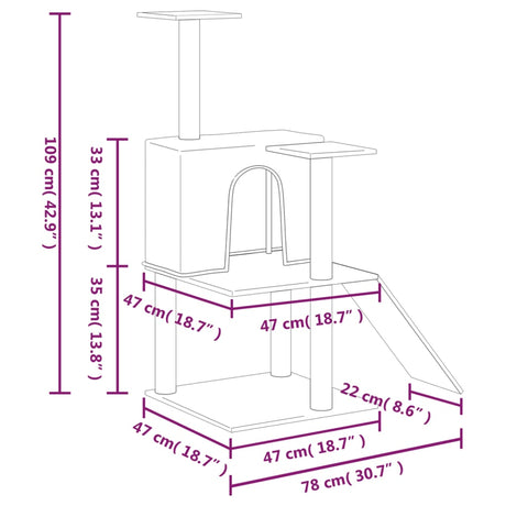 Cat Tree with Sisal Scratching Posts Light Grey 109 cm