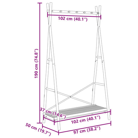 Clothes Rack with Shelf 102x50x190 cm Bamboo