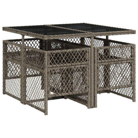 5 Piece Garden Dining Set with Cushions Grey Poly Rattan