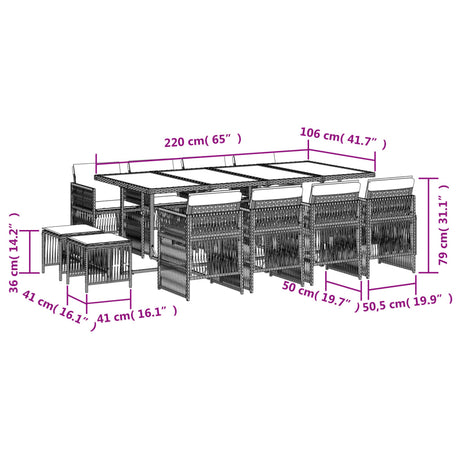 11 Piece Garden Dining Set with Cushions Grey Poly Rattan