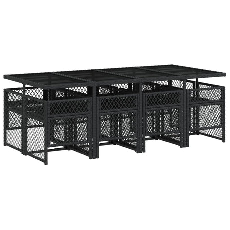 9 Piece Garden Dining Set with Cushions Black Poly Rattan