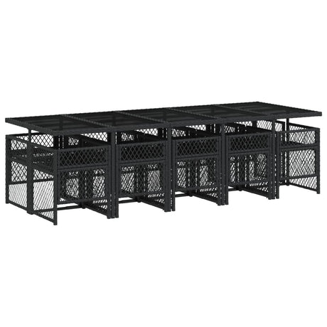 11 Piece Garden Dining Set with Cushions Black Poly Rattan