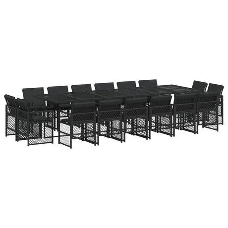 15 Piece Garden Dining Set with Cushions Black Poly Rattan