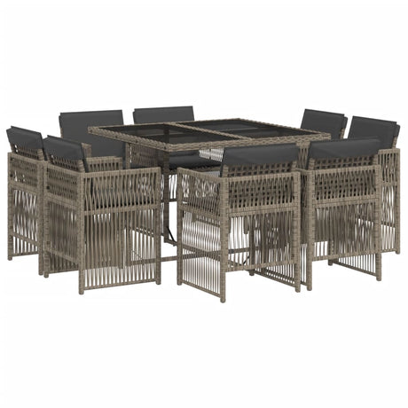9 Piece Garden Dining Set with Cushions Grey Poly Rattan