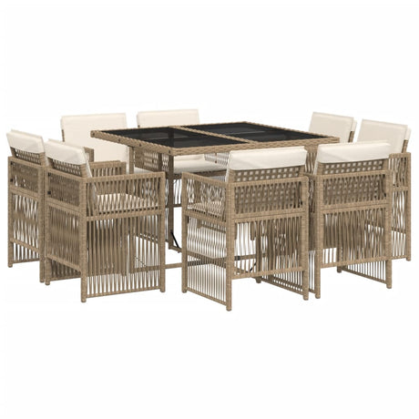 9 Piece Garden Dining Set with Cushions Mix Beige Poly Rattan