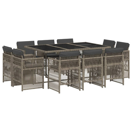 11 Piece Garden Dining Set with Cushions Grey Poly Rattan