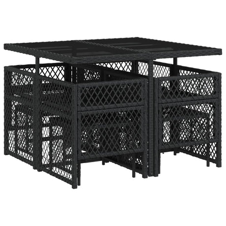 9 Piece Garden Dining Set with Cushions Black Poly Rattan
