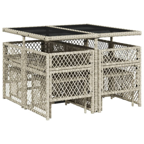 9 Piece Garden Dining Set with Cushions Light Grey Poly Rattan
