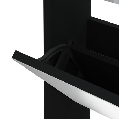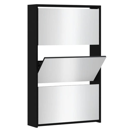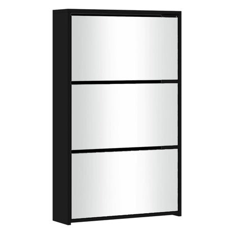 Shoe Cabinet with Mirror 3-Layer Black 63x17x102.5 cm
