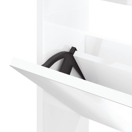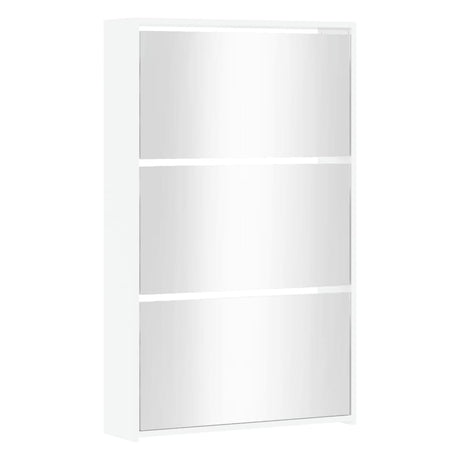 Shoe Cabinet with Mirror 3-Layer High Gloss White 63x17x102.5 cm
