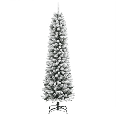 Artificial Slim Christmas Tree with Flocked Snow 210 cm PVC&PE