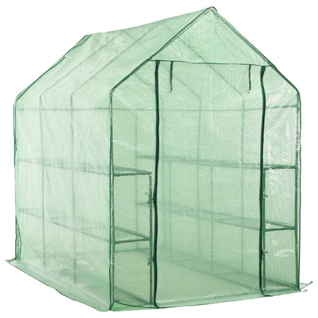 Walk-in Greenhouse with 12 Shelves Steel 143x214x196 cm