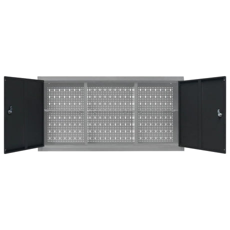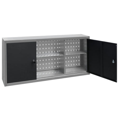 Wall Mounted Tool Cabinet Industrial Style Metal Grey and Black