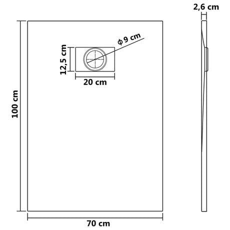 Shower Base Tray SMC Black 90x70 cm