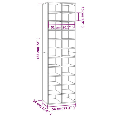 Shoe Cabinet Grey Sonoma 54x34x183 cm Engineered Wood