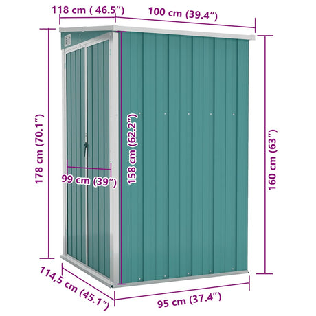Wall-mounted Garden Shed Green 118x100x178 cm Galvanised Steel