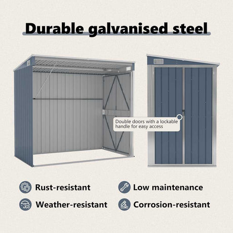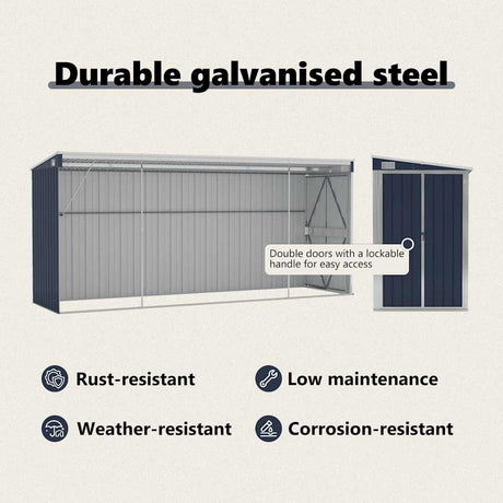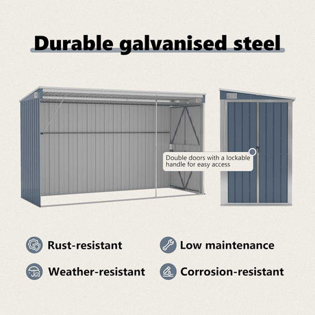 Wall-mounted Garden Shed Grey 118x288x178 cm Galvanised Steel