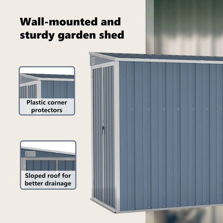 Wall-mounted Garden Shed Grey 118x194x178 cm Galvanised Steel