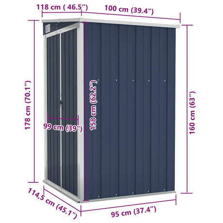 Wall-mounted Garden Shed Anthracite 118x100x178 cm Steel