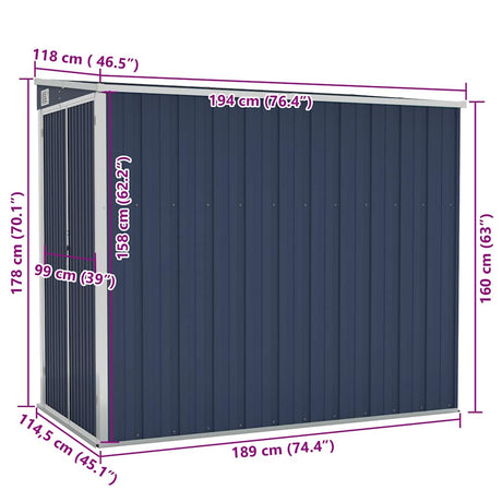 Wall-mounted Garden Shed Anthracite 118x194x178 cm Steel