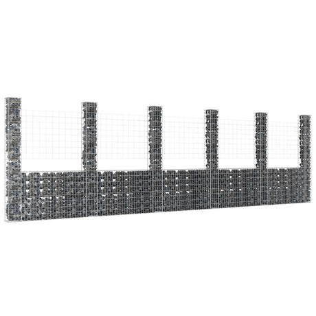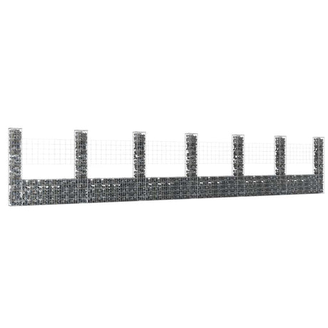 U-shape Gabion Basket with 7 Posts Iron 740x20x150 cm