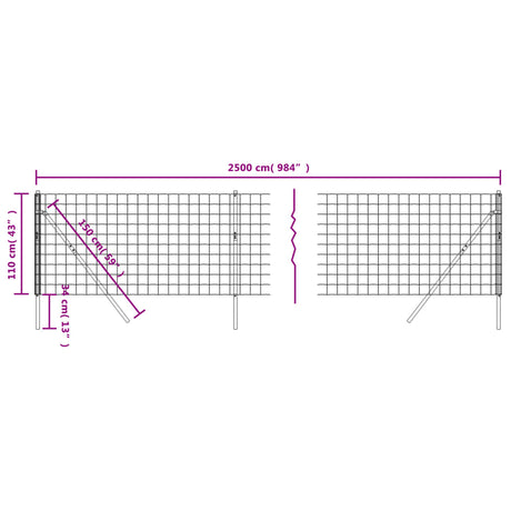Wire Mesh Fence with Spike Anchors Anthracite 1x25 m