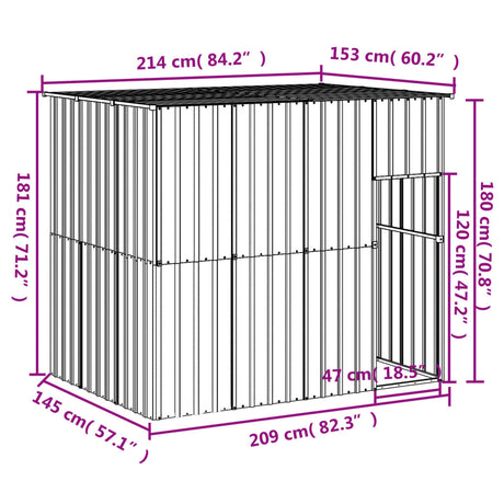 Dog House with Run Anthracite 165x251x181 cm Galvanised Steel