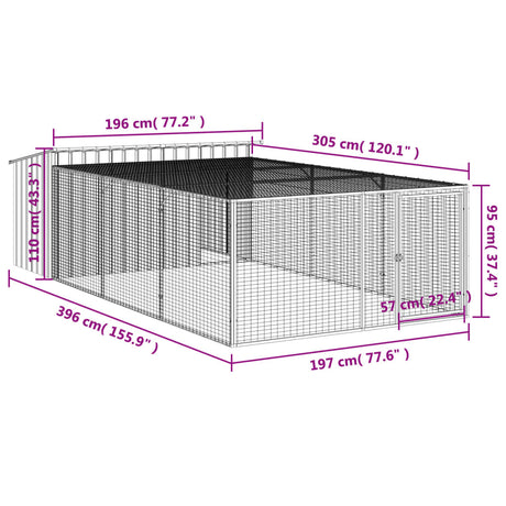 Dog House with Run Anthracite 197x396x110 cm Galvanised Steel
