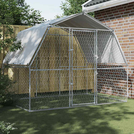 Dog Cage with Roof and Door Silver Galvanised Steel