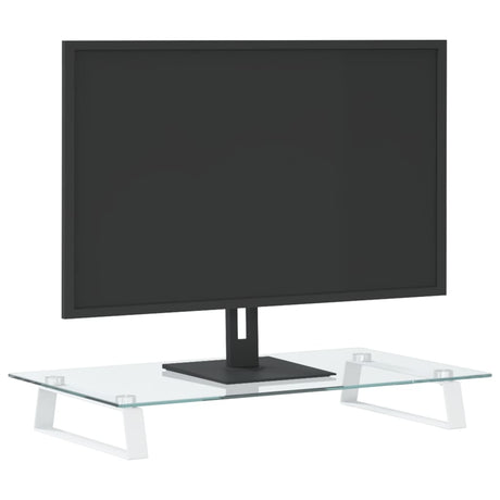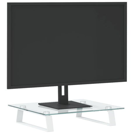 Monitor Stand White 60x35x8 cm Tempered Glass and Metal