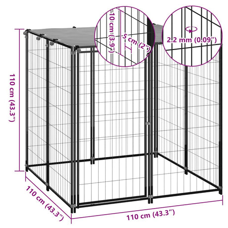 Outdoor Dog Kennel Galvanised Steel with Roof 110x220x180 cm
