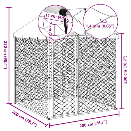 Outdoor Dog Kennel with Roof Silver 2x2x2.5 m Galvanised Steel