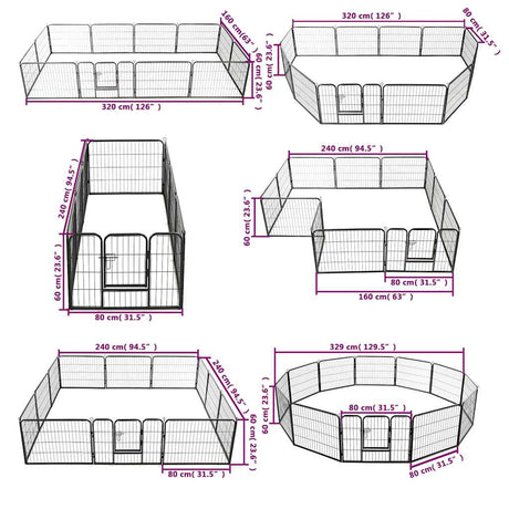 Dog Playpen 8 Panels Steel 80x60 cm Black