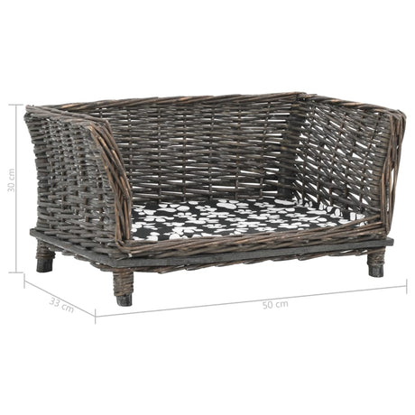 Dog Basket with Cushion Grey 50x33x30 cm Natural Willow
