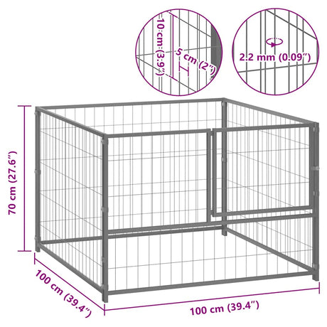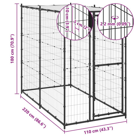 Outdoor Dog Kennel Steel with Roof 110x220x180 cm