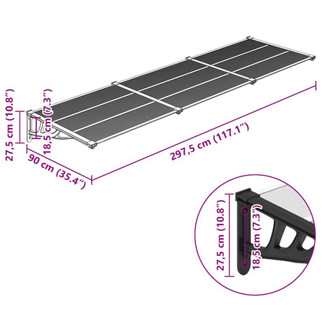 Door Canopy Black 297.5x90 cm Polycarbonate