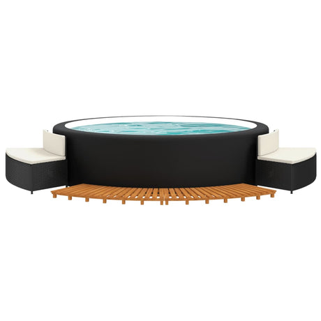 Hot Tub Surround Black Poly Rattan and Solid Wood Acacia