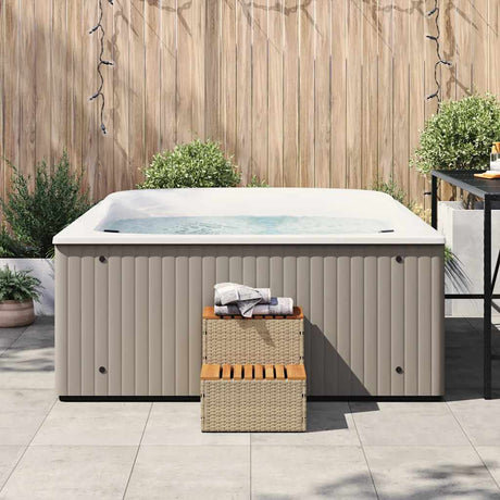 Hot Tub Step Beige 50x50x50.5 cm Poly Rattan and Solid Acacia