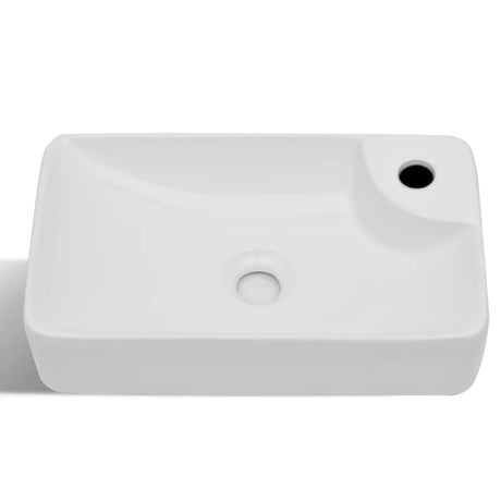 Ceramic Bathroom Sink Basin with Faucet Hole White