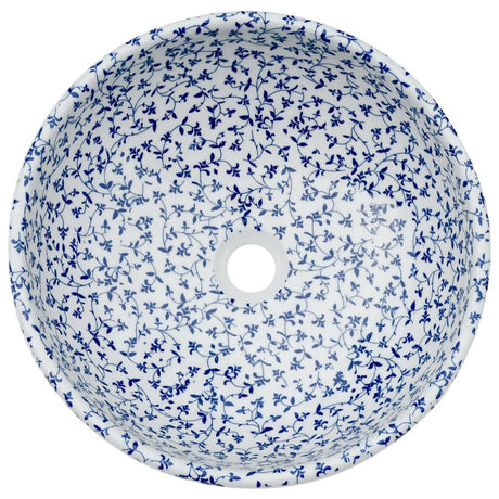 Countertop Basin White and Blue Round Φ41x14 cm Ceramic