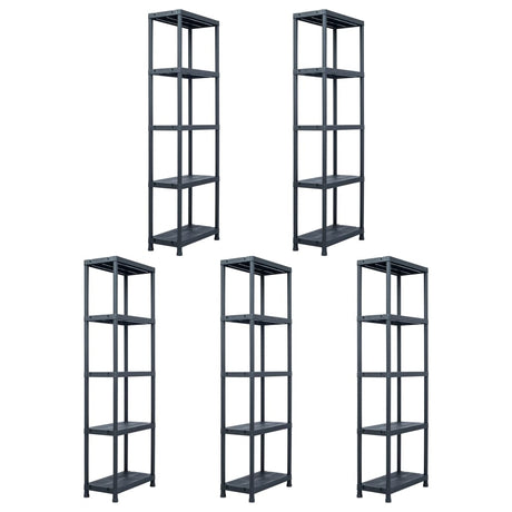 Storage Shelf Racks 5 pcs Black 125 kg 60x30x180 cm Plastic