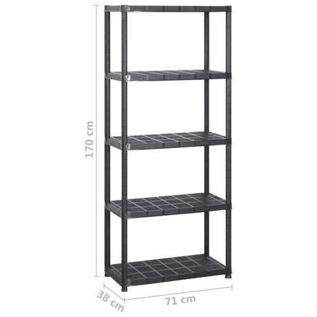 Storage Shelf 5-Tier Black 142x38x170 cm Plastic
