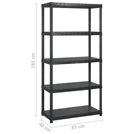 Storage Shelf 5-Tier Black 255x40x185 cm Plastic