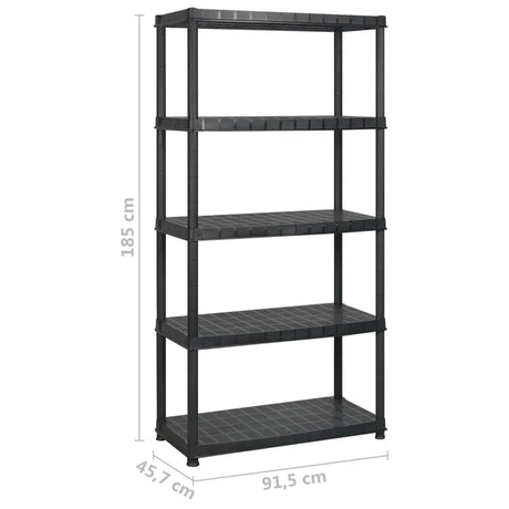 Storage Shelf 5-Tier Black 366x45.7x185 cm Plastic