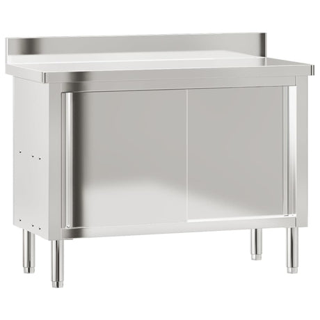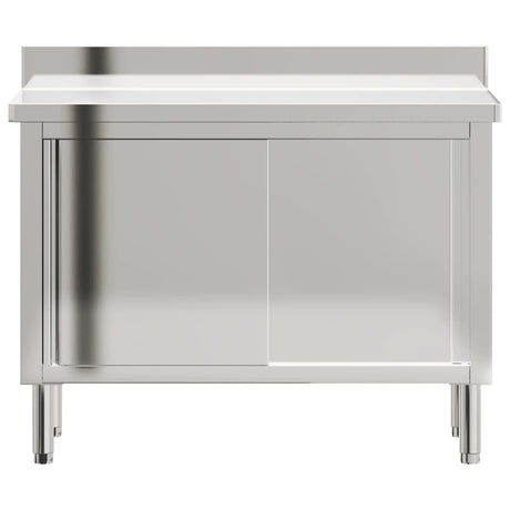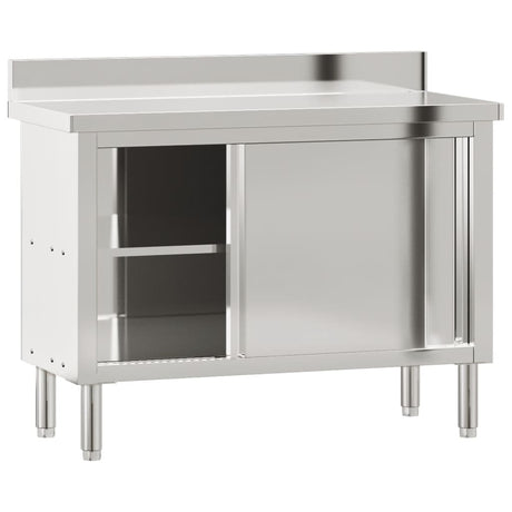 Kitchen Work Table with Sliding Doors Stainless Steel