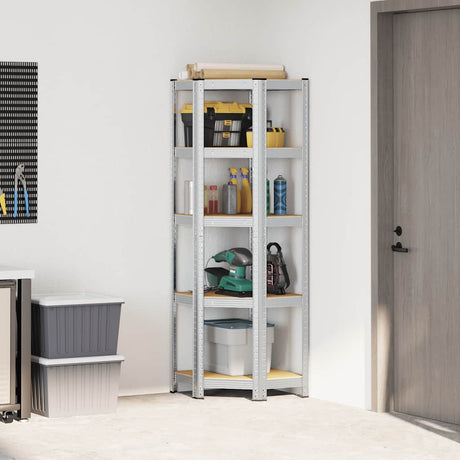 5-Layer Corner Shelf Silver Steel&Engineered Wood