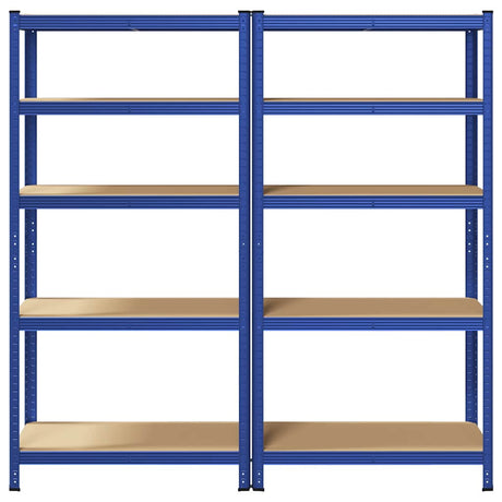 5-Layer Storage Shelves 2 pcs Blue Steel&Engineered Wood