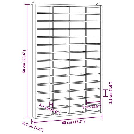 Wooden Collector's Display Case with 56 Compartments 40x4.5x60cm