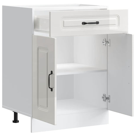 Kitchen Base Cabinet "Kalmar" High Gloss White Engineered Wood
